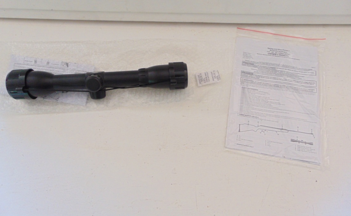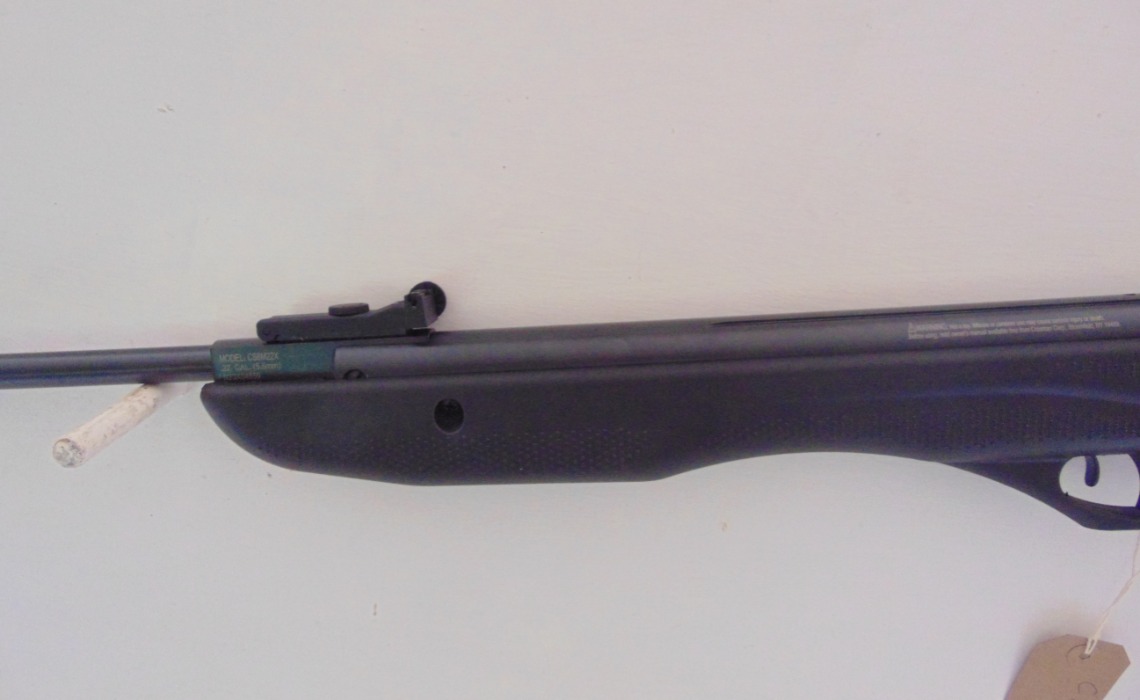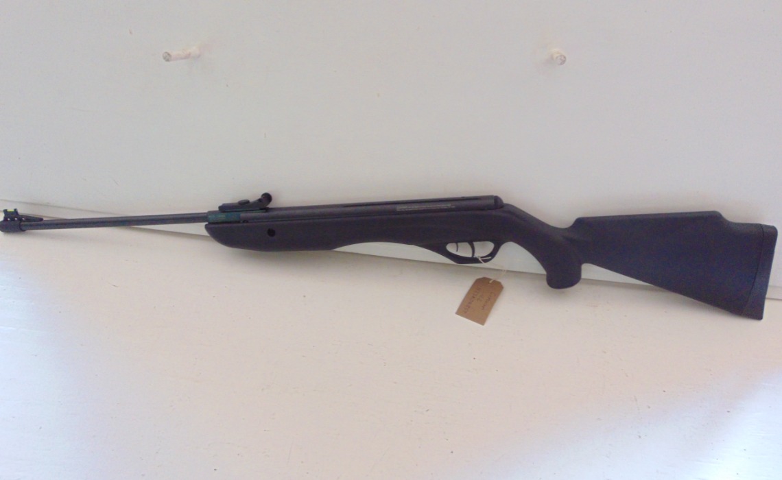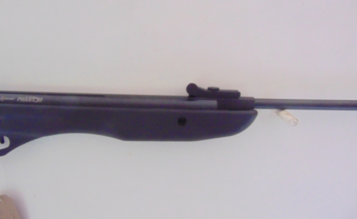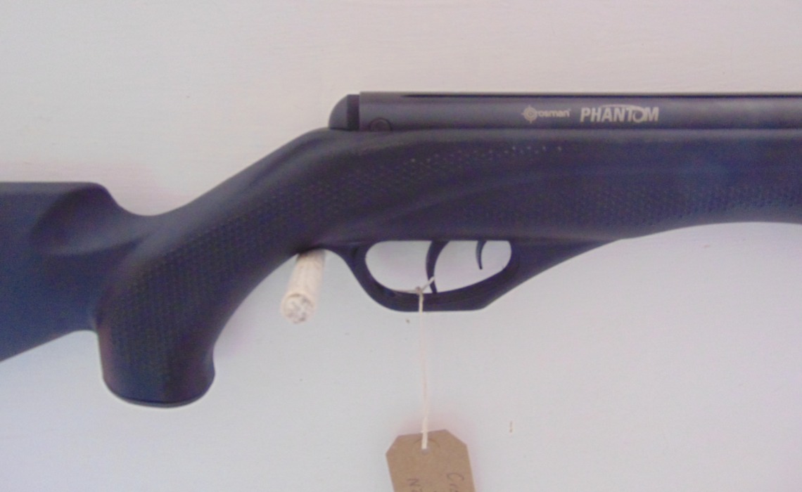 Crosman Phantom in .22, brake barrel air rifle, as new condition, in makers box, comes with scope and mounts. No license required. Stock No. C219