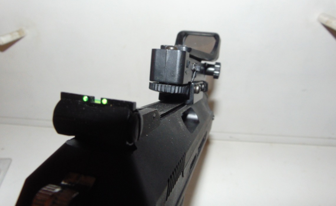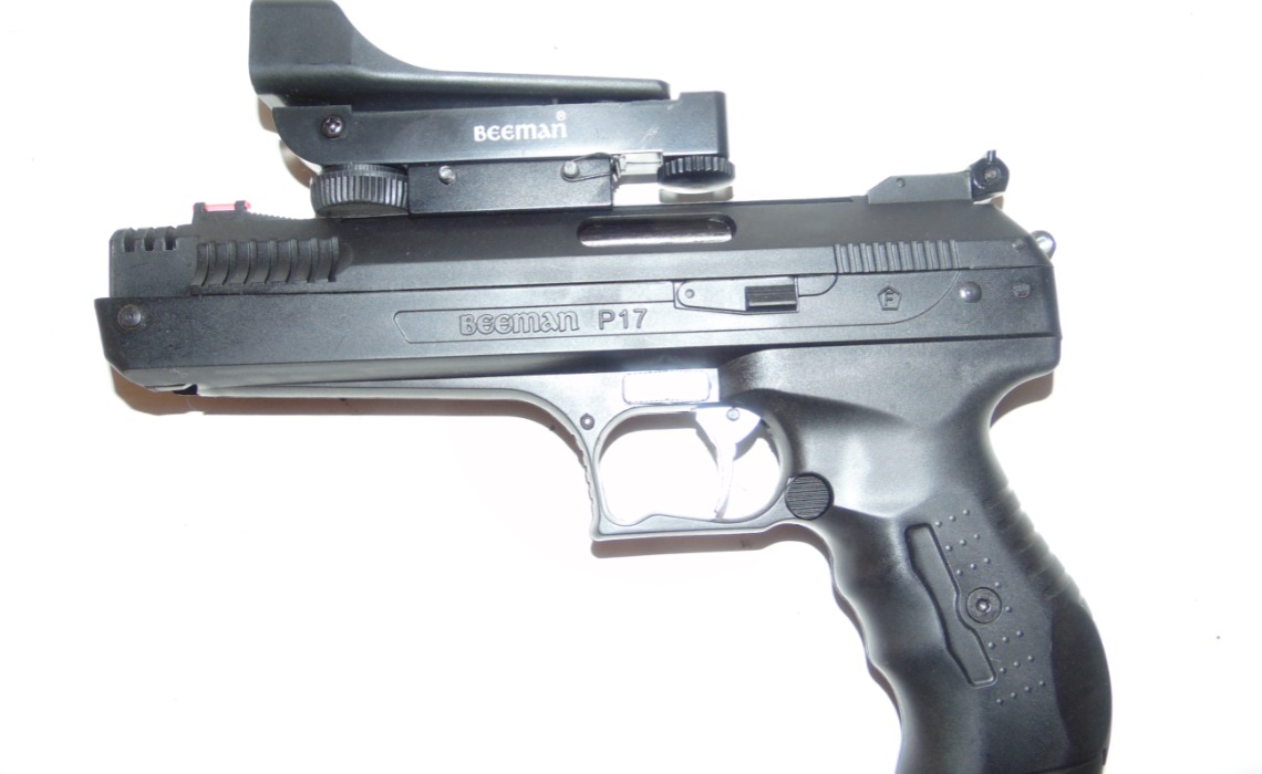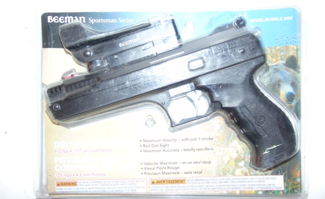 NEW Beeman Sportsman is a single stroke pneumatic air pistol that fires pellets and is fitted with a red dot sight, it also has open sights, it is currently available in .177 and .22. No license required but must be over 18. Stock No. C246
