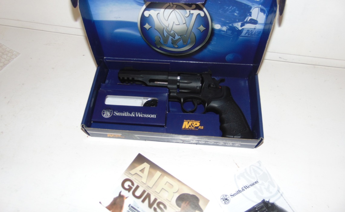 New Umarex Smith and Wesson M&P R8 a CO2 powered .177 BB revolver air pistol. No license required but must be over 18. Stock No. C250