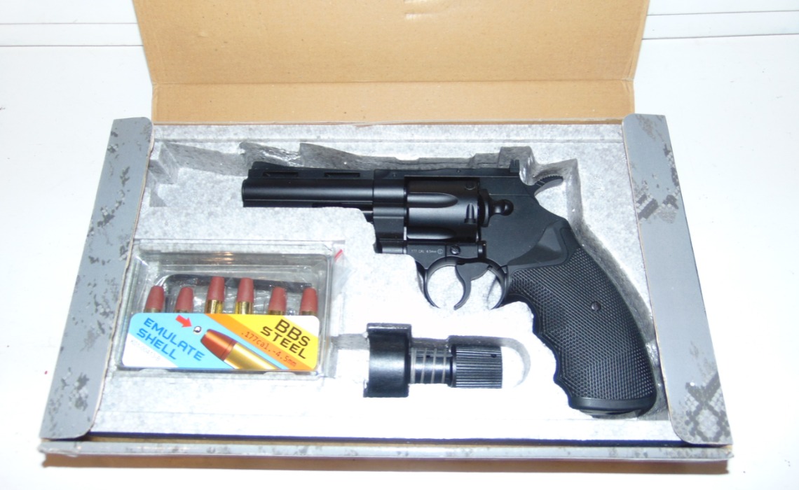 NEW KWC model 357 4' is a CO2 powered .177 BB revolver air pistol. No license required but must be over 18. Stock No. C254