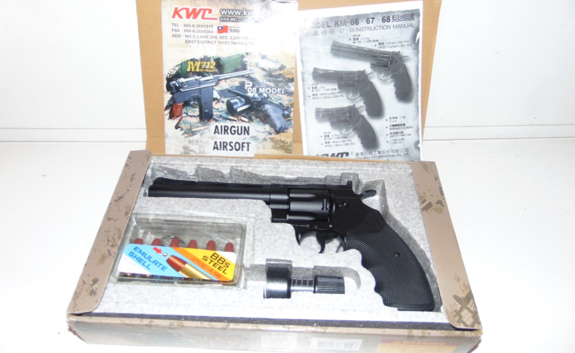 NEW KWC Model 357 6' is a .177 BB CO2 powered revolver air pistol. No license required but must be over 18. Stock No. C255