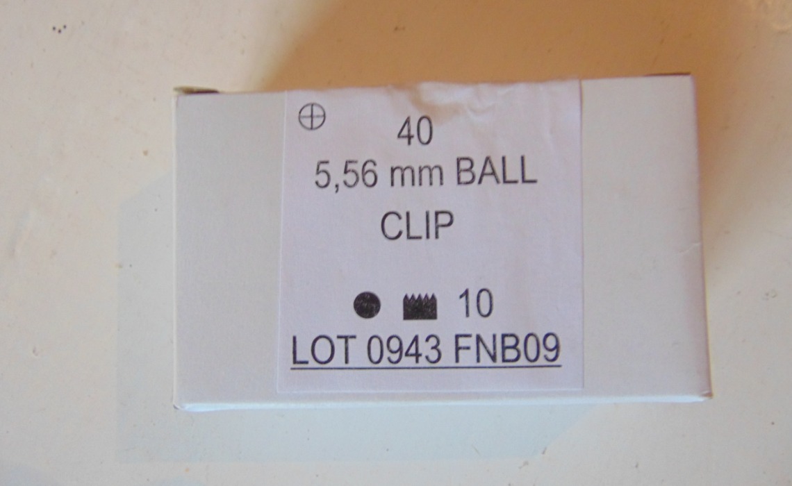 5.56 NATO .223 in boxes of 40 in 10 round stripper clips. Priced per 40. Collection only.
