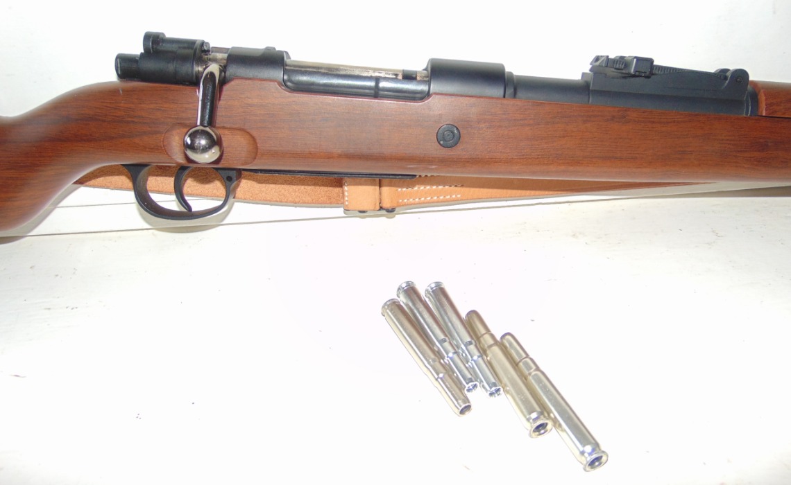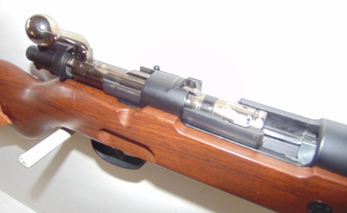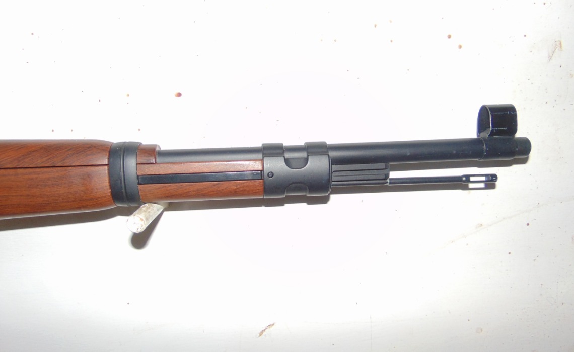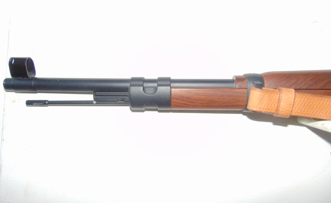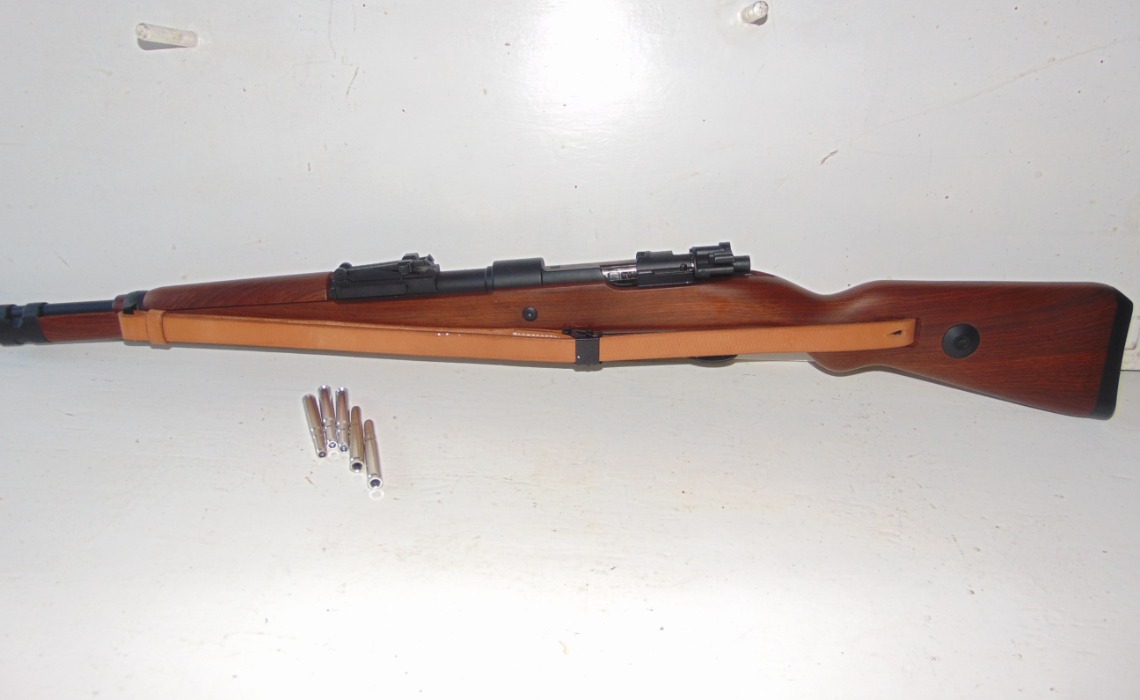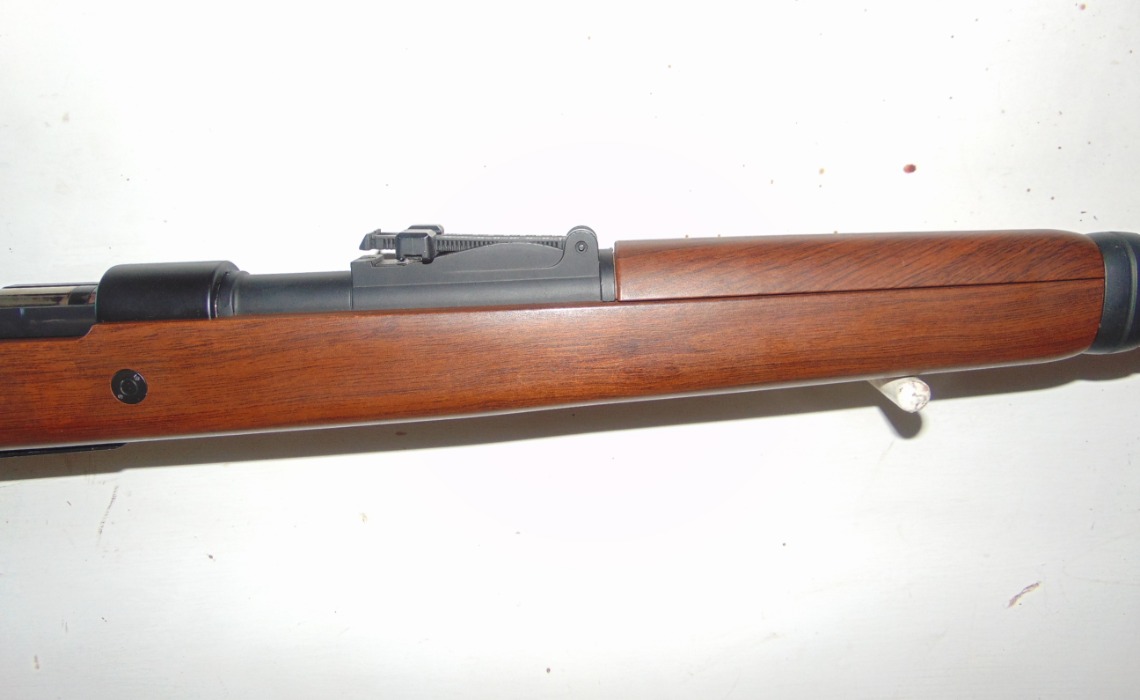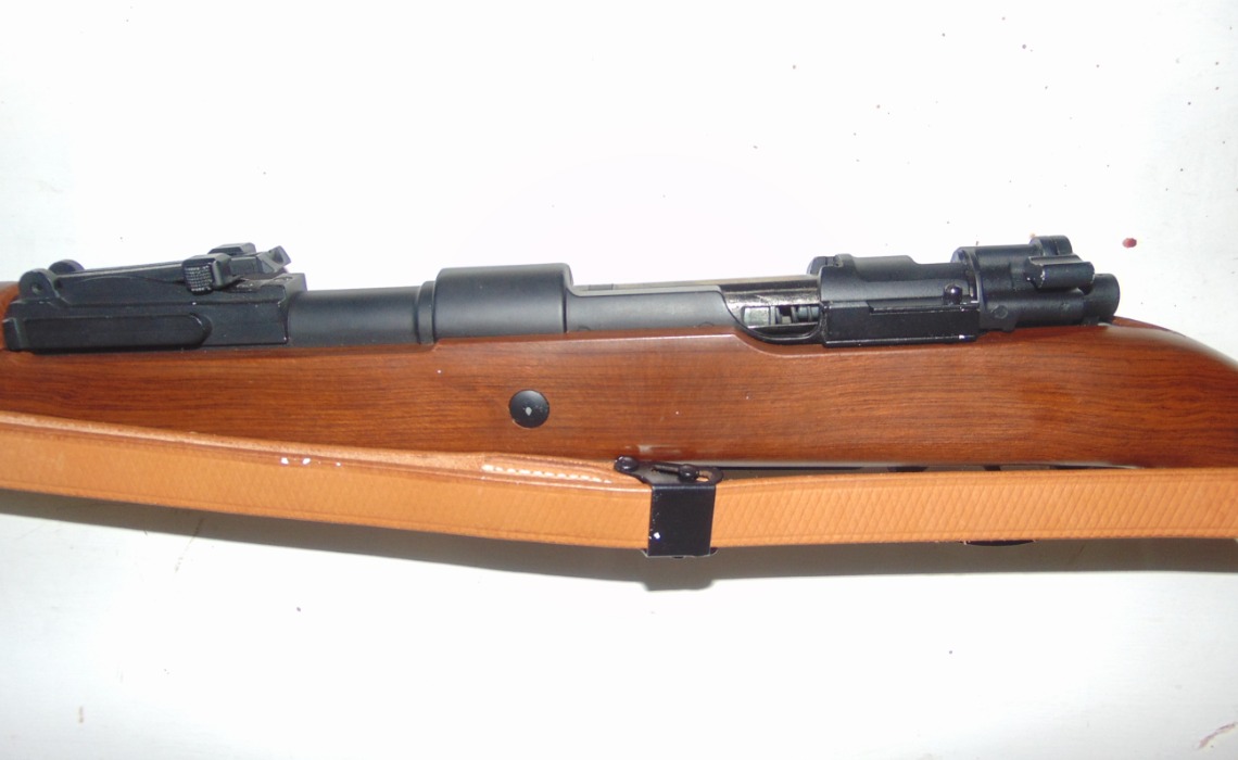 Double Bell KAR 98 air soft rifle, a scale detailed copy of the famous German infantry rifle, in 6mm BB, supplied with 5 rounds. As this is an air soft replica, proof of membership of a registered air soft or re-enactment group will be required to purchase. Stock No. C312